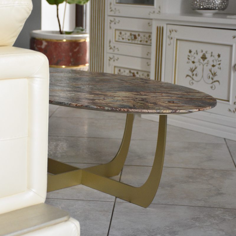 Kahverengi ve beyazın doğal mermer üzerindeki özgün desenleri, her ürünü benzersiz kılar. Modern çizgilerle şekillenen bu sehpa, hem klasik hem çağdaş mekanlara uyum sağlar. Estetik ve fonksiyonelliği bir arada sunan bu tasarım, zamana meydan okur.