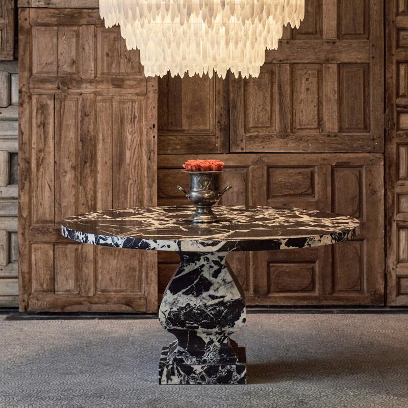 Yuvarlak formuyla sıcak bir atmosfer sunan bu masa, bulunduğu mekâna güçlü bir karakter katar.