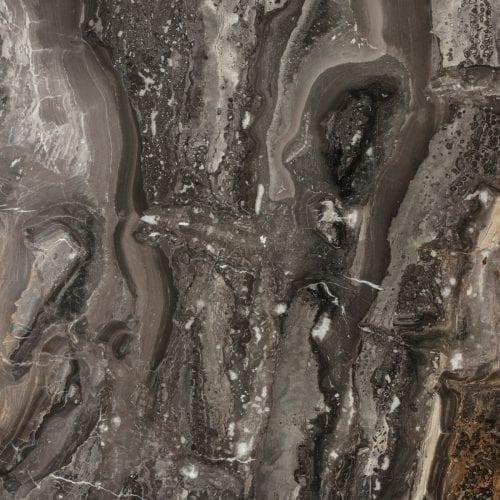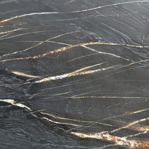 Yoğun siyah zemin üzerinde doğal damarlarla zarif bir duruş sağlar.